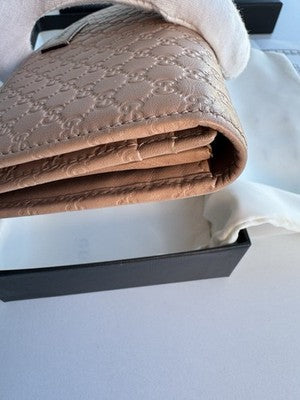 The GUCCI Shoulder Wallet Folded Long Wallet Crossbody 3WAY Micro Guccisima is a stylish and versatile accessory for women. Made by the prestigious brand Gucci, this wallet features a folding design and can be used as a shoulder bag, crossbody bag, or traditional wallet. Its compact size makes it perfect for carrying on-the-go, while the Guccisima print adds a touch of luxury to any outfit. Ideal for those who appreciate high-quality craftsmanship and timeless elegance.