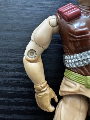 The Hasbro GI Joe 1988 Vintage Sgt Slaughter v1 Figure is a classic 3.25 inch action figure from the G.I. Joe franchise. This original figure of Sgt Slaughter, a featured character from the GI JOE TV show, is a sought-after collectible for fans of the series. With its vintage design and brand by Hasbro, this figure captures the essence of the 1988 time period and is a must-have for any GI Joe enthusiast looking to add a piece of nostalgia to their collection. Loose. Sold as is.