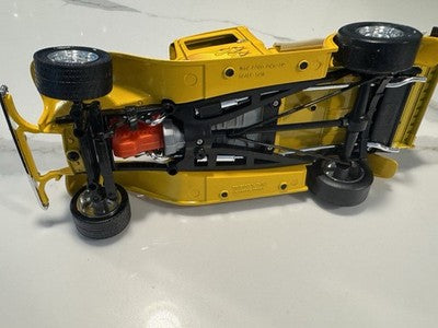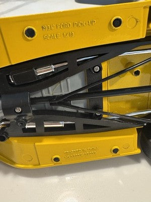 The Road Legends 1934 Ford F-100 Pickup Pro Street Truck is a 1:18 scale diecast model featuring stunning yellow flames. This collectible toy vehicle is part of the Cars series and is recommended for ages 16 and up. Made by Road Signature, this highly detailed model stays true to the classic Ford F-100 design, making it a must-have for any diecast car enthusiast.